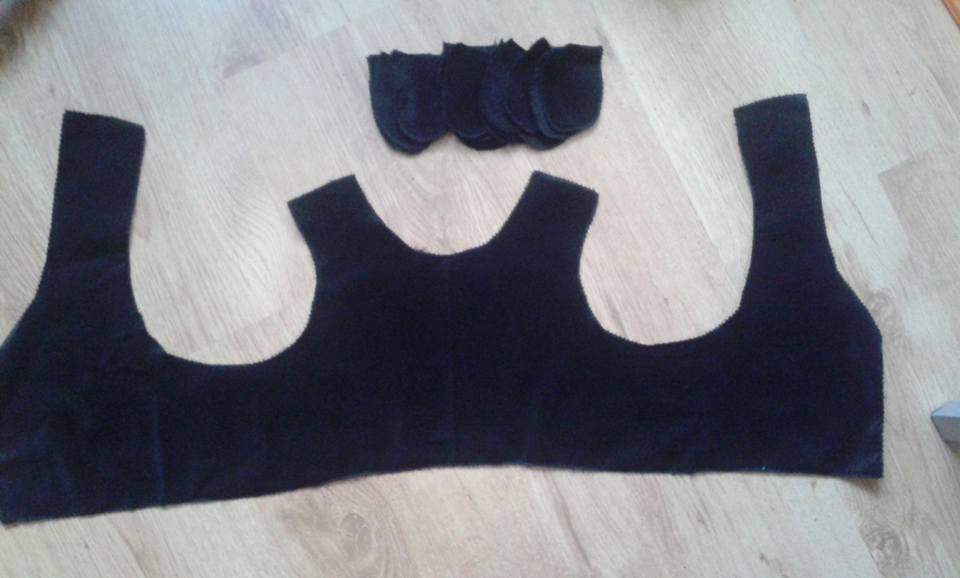 tak wyglądał gorset przed zszyciem - ucieszylam się że już koniec do czasu kiedy dotarło do mnie, że jeszcze 20 patek - tzw. kaletek trzeba wyszyć i potem to wszystko jeszcze pozszywać na podszewce której też nie miałam....